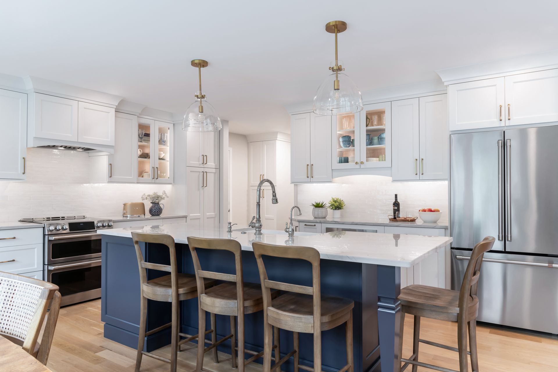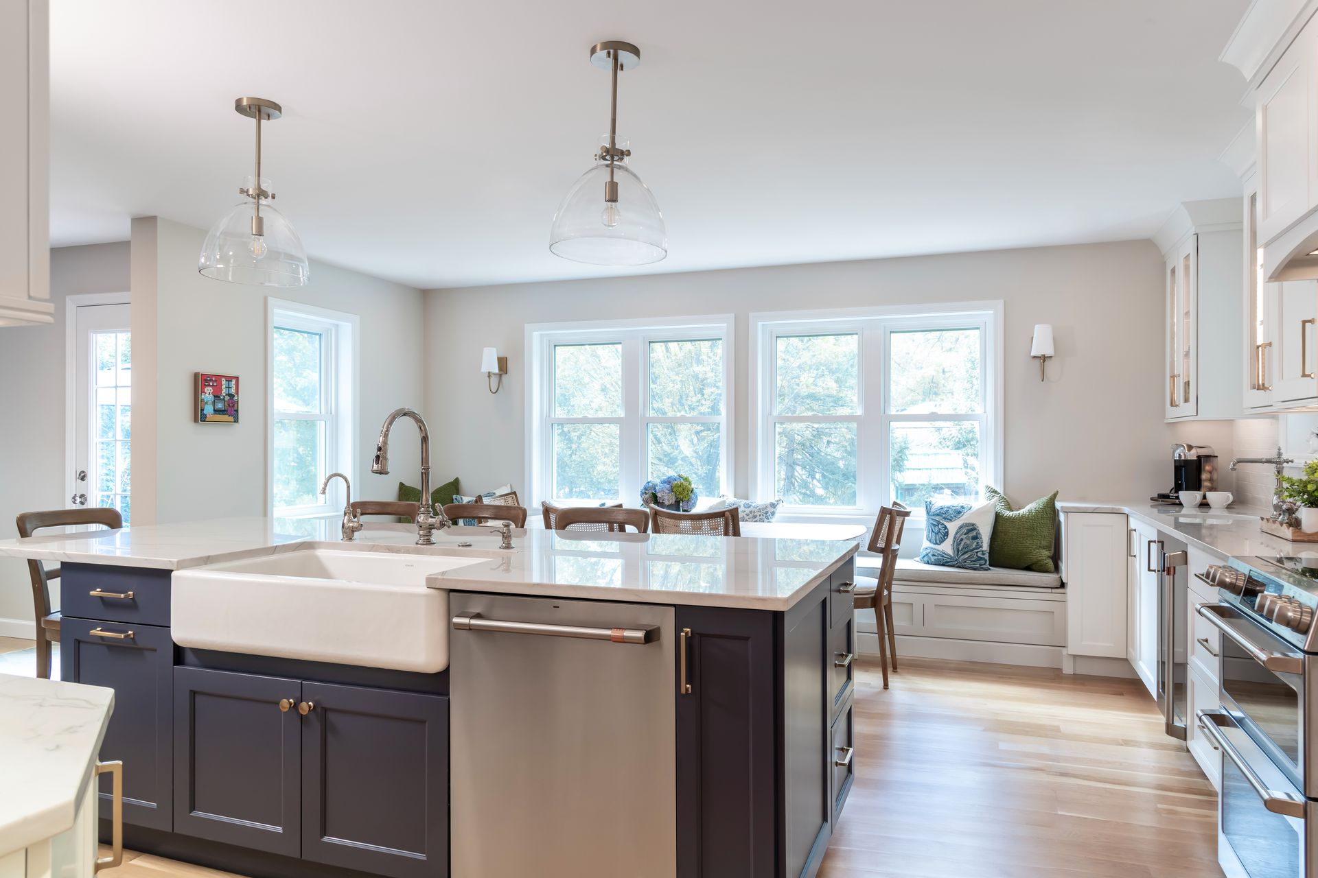 Whether you want a minimalist white kitchen look or a splash of color and accents, we can bring together top-quality cabinetry, lighting, and accessories to create a sleek modern kitchen layout. From floating shelving to hard stone countertops, we have access to a wide range of contemporary kitchen materials, and our design experts will ensure form, function, and beauty are blended seamlessly in your kitchen renovation plans. Connect with our team today for more information.
